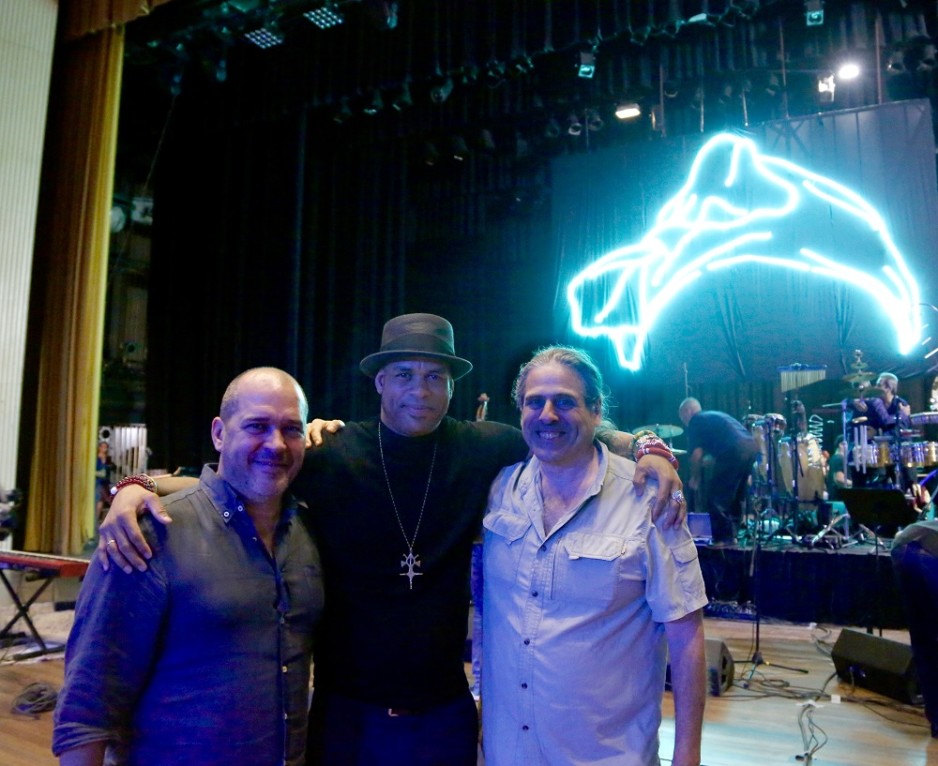 - Kadir and Eric with band leader Roberto Fonseca after the final concert of the “Last Kiss” tour.