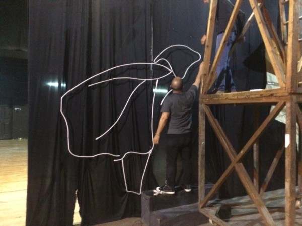 - Applying the template before mounting the neon to frame for the final concert in Omara Portuondo’s “Last Kiss Tour”